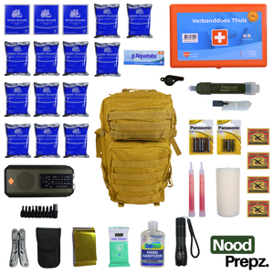 We bieden bij NoodPrepz verschillende pakketten aan, van uitgebreid tot compleet. Het kiezen van het juiste noodpakket hangt af van je persoonlijke situatie en de omgeving waarin je je bevindt. Voor thuisgebruik zijn onze complete pakketten ideaal. Ze bevatten alles wat je nodig hebt om de eerste 72 uur of langer zelfstandig door te komen, inclusief voedsel, water, EHBO-materialen en belangrijke hulpmiddelen. Ook voor onderweg raden we deze compacte noodpakketten aan die makkelijk mee te nemen zijn in de auto of rugzak, zodat je ook onderweg goed voorbereid bent.
