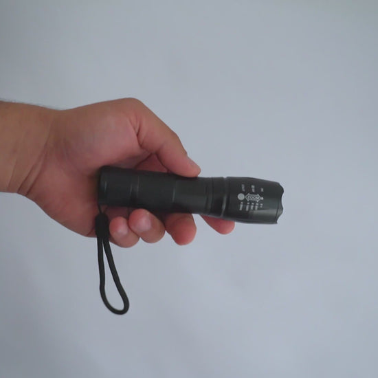 Stevige LED-zaklamp met verstelbare lichtbundel. Ideaal voor stroomuitval, kamperen of gebruik onderweg. Compact formaat, past in elke tas of uitrusting.
