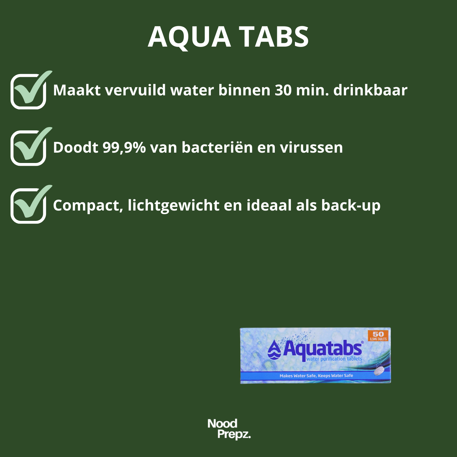 Waterzuiveringstabletten voor noodgebruik. Eén tablet maakt 1 liter helder water drinkbaar binnen 30 minuten. Handige back-up naast je filter, neemt nauwelijks ruimte in. -
