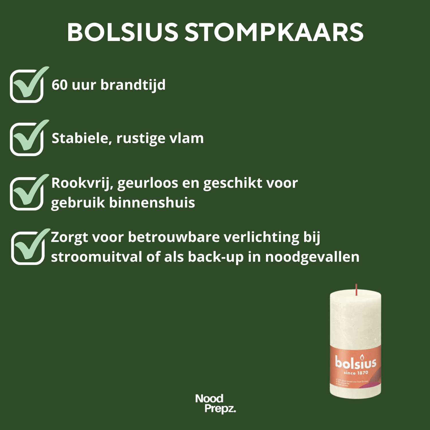 Betrouwbare noodverlichting zonder batterijen. Brandt tot 60 uur met stabiele vlam. Rookvrij en geurloos, veilig voor binnenshuis gebruik. -