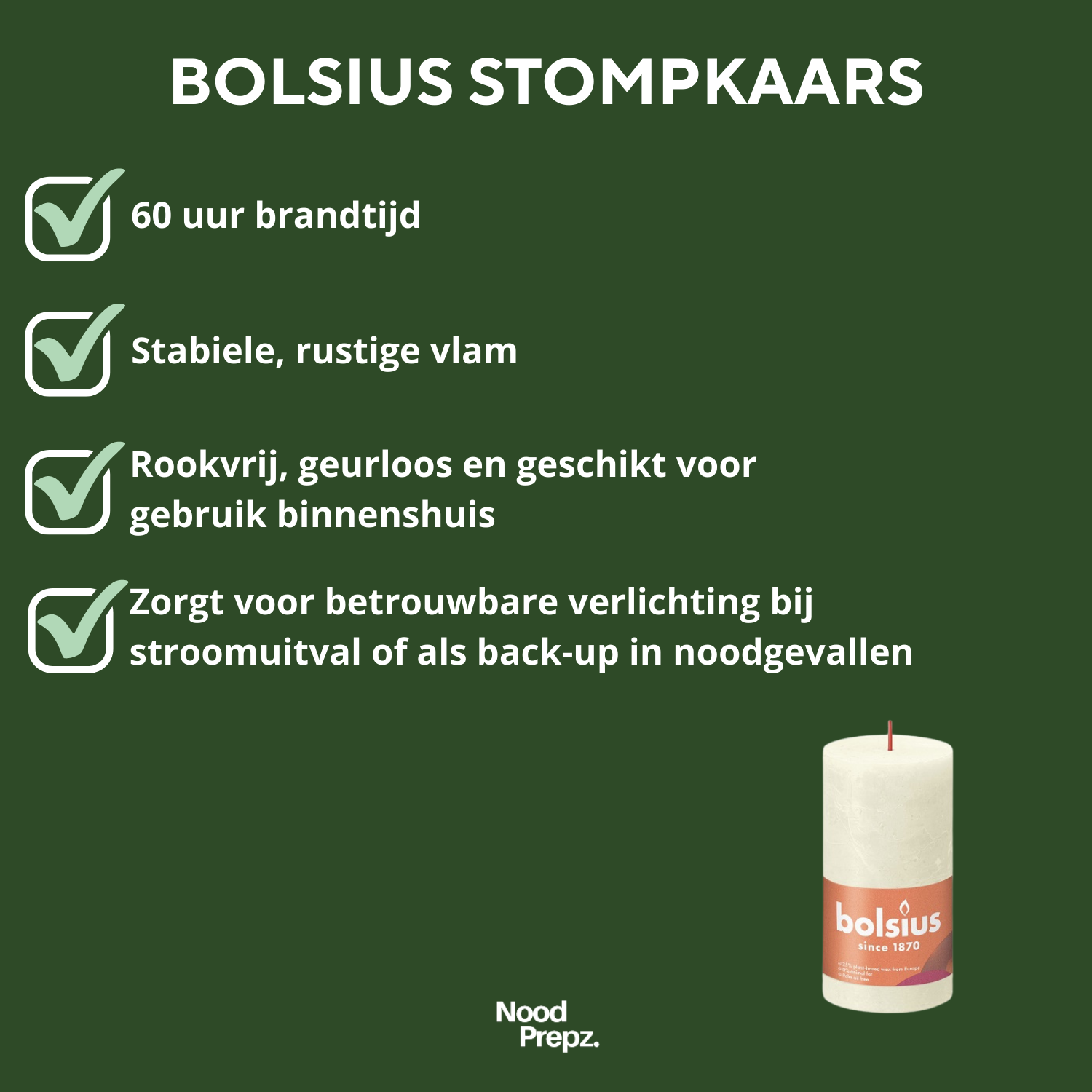 Betrouwbare noodverlichting zonder batterijen. Brandt tot 60 uur met een stabiele vlam. Rookvrij en geurloos; veilig voor binnenshuis gebruik. -